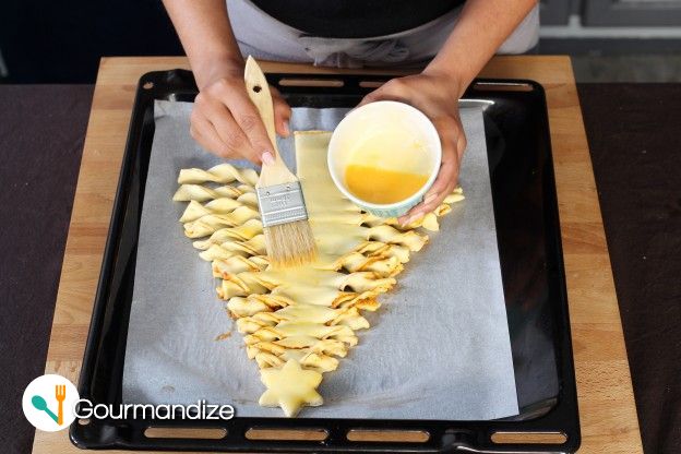 Slather the tree with a beaten egg using a brush.