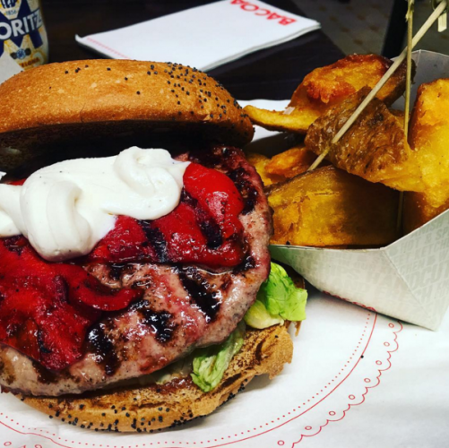 This popular burger spot is reason enough to visit Barcelona. The Burgos is a must try—200 grams of ground lamb topped with roasted red peppers and creamed goat's cheese. Or if you're feeling ravenous, go for the San Jacobo, which consists of Iberico ham and Manchego cheese stuffed into pork loin and topped with sweet and sticky caramelized onions. For the rest, you have 18-month matured organic Spanish beef, marinated chicken that's either grilled or breaded and a vegetarian chickpea burger. Prices: Starts at 4-6.50€ (about $4.50-7 USD)