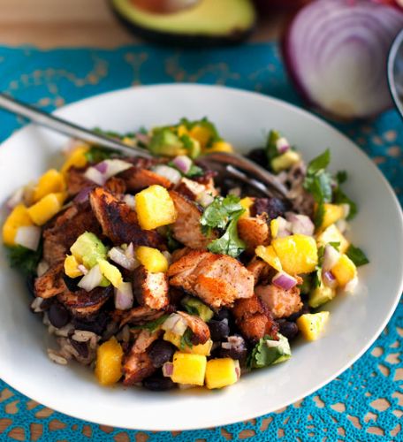 There's so much goodness in this salmon bowl that we don't even know where to start. How about the spicy salmon itself, or the juicy mango chunks, or the coriander and lime, the avocado... you get the picture!