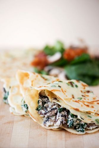 If your savory crepe routine needs a bit of livening up, try mixing some chopped green onion and Parmesan cheese into the batter. Then fill them with creamy ricotta, spinach, mushroom and bacon, and be prepared to fall in love with savory crepes all over again. Find the step-by-step recipe here.