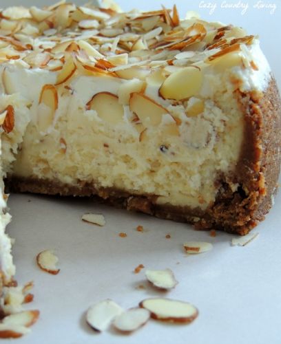 It's debatable, but after seeing this, we kind of think that every cheesecake EVER should be a white chocolate and almond amaretto cheesecake. The graham cracker and almond crust was made to be topped with a cream cheese, white chocolate and amaretto filling, then a layer of sweetened sour cream and sliced almonds to finish.