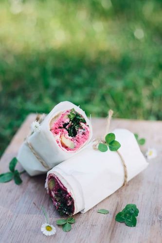 This simple wrap is packed with yummy nutrients. Simply combine the beets, chickpeas, and tahini in a food processor to make the hummus. To assemble, spread on whole wheat tortilla wraps before adding fresh avocado slices, feta cheese, and fresh parsley. The best part? It only takes 15 minutes to make! Recipe here.