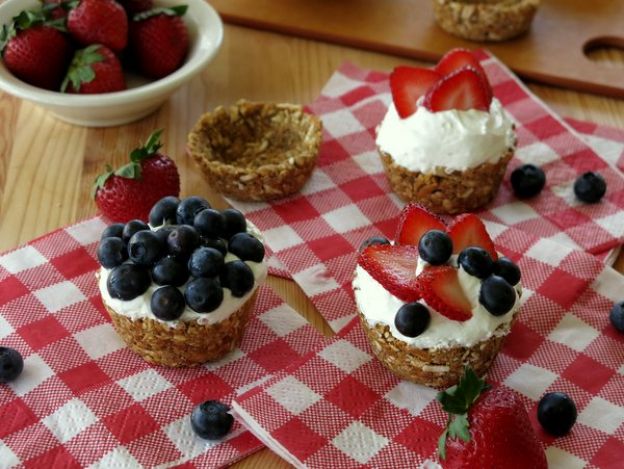 No-bake berry cheesecake in pretzel cups