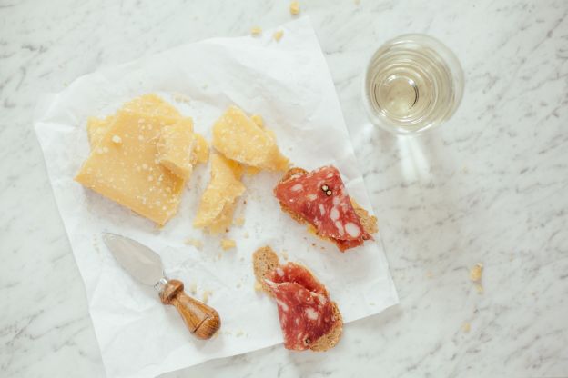 3. Layer cheddar, blue, and mozarella cheese inside the bread