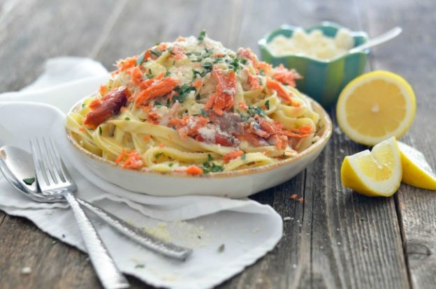 We've always got a packet of dried fettuccini bouncing around in our pantry, and this recipe is another great reason to pull it out.