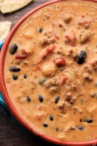 It doesn't take much to make this rich and cheesy Mexican party dip, especially with the help of your trusty slow cooker. Simply toss the ingredients in, and let them all melt down into a bean-filled, seasoned and spiced bowl of deliciousness.