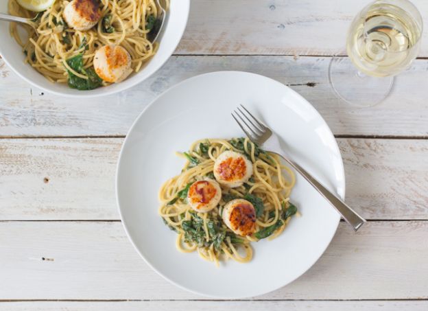 This recipe pairs mouth-watering seared scallops with a bright white wine garlic sauce, adding in a generous bunch of fresh spinach for color and a pinch of red pepper for a touch of heat.