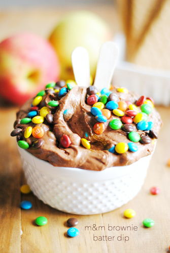 There are some people who believe batter should always be baked, and then there are the rest of us. This brownie batter dip is for us. No baking required, just mixing it all up, throwing in some M&Ms and spreading it on pretzels, graham crackers, sliced fruit...whatever your heart desires! Oh, and there are no raw eggs in there, fear not.