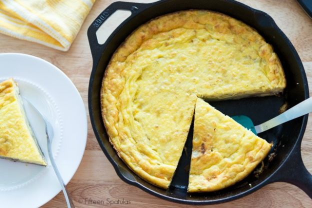 Frittatas are a delicious, easy, and inexpensive dinner.  This Spanish tortilla frittata is packed with thinly sliced potato and onion, as well as a generous portion of nutty Manchego cheese. The recipe is meant for a crowd, but it scales down easily to make a perfect personal frittata.
