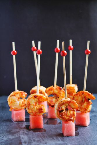 Your guests won't be able to get enough of this stylish party snack; the spiciness of the jumbo prawns is the perfect match for the sweetness of the watermelon chunks. Check out the recipe here.