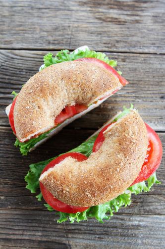 Many a weekday lunch—and many a handbag!—have been ruined by a soggy sandwich or a leaky salad.  Taking the time to properly pack your food in quality containers can make all the difference.  When packing a sandwich with fresh veggies in it, like this turkey bagel one, for example, keep the lettuce and tomatoes separate, then add them to your sandwich at the last minute.