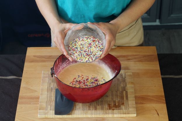 Add the sprinkles for the cake batter.