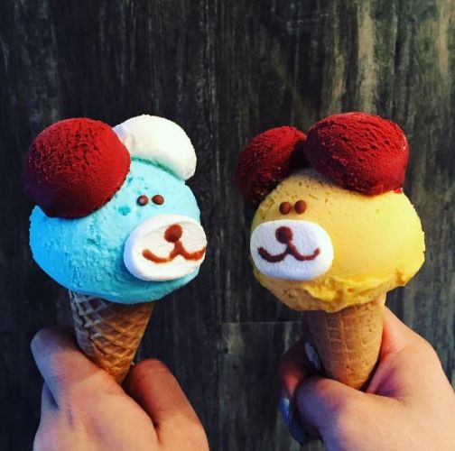 These adorable teddy bear cones come from Eiswelt Gelato in California, USA. Choose up to 3 flavors of their homemade Italian gelato to be sculpted into the bear shape, or if you're more of a small animal fan, they also do pig and dog ones too. Sorry, piggy and doggy