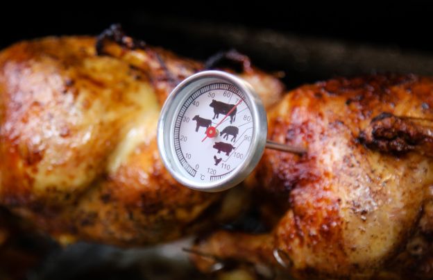 Place a meat thermometer inside the meat before you start cooking it. Keep an eye on it until it reaches 170°F, which is the temperature at which the meat is considered safe to eat. Starting the meat on high and cooking it for several hours should guarantee this, but it's important to verify the internal temperature just in case.