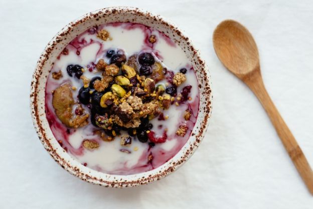 Thanksgiving mornings can be cold before the oven fires up and the kitchen fills with activity. Thaw your bones with this warm fruit bowl with cashew milk. The beauty of this recipe is that it can be prepped in five minutes with anything you have at hand: combine any kind of milk with hot baked seasonal or fresh fruit, and top with coconut shavings, seeds and a dash of cinnamon.