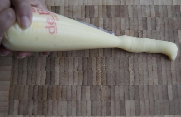 To make evenly shaped potato pillows, add the mashed potato mixture to a piping bag.