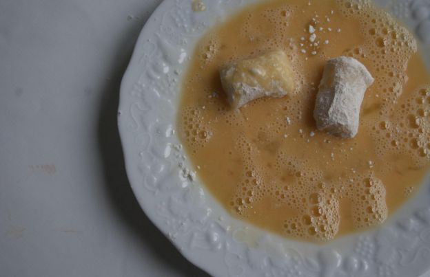 5. Stuff the gaps in the eggplant with shredded cheese.