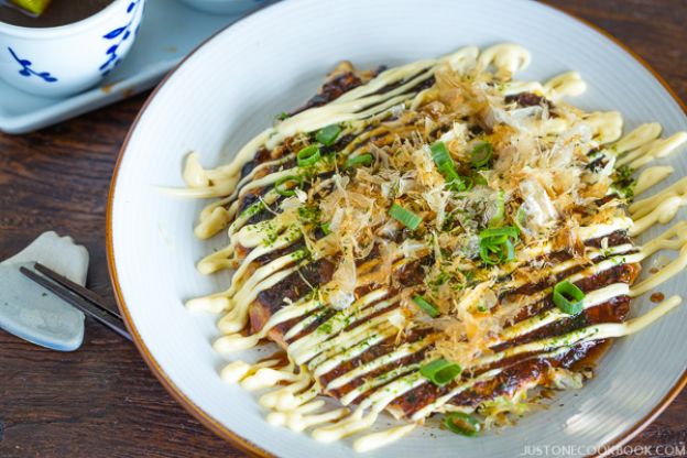 The Japanese don't kid around when it comes to their savory pancakes. Just look at this recipe for okonomiyaki, composed of flour, eggs, shredded cabbage, sliced pork belly and plenty of tangy condiments. In Japan, they're like mini pizzas, with countless topping variations.