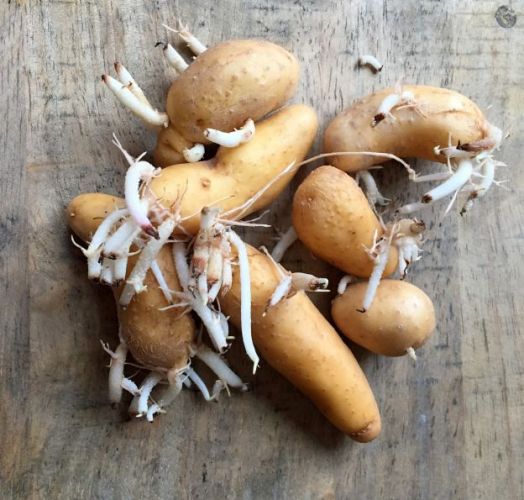 If your potatoes have really sprouted a lot, like in this photo, throw them out. If they are mushy and wrinkly, not only will they taste bad but they could get you sick.