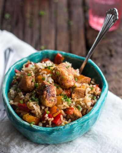 Spice up your family weeknight dinners with this delicious and colorful Cajun chicken and rice!
