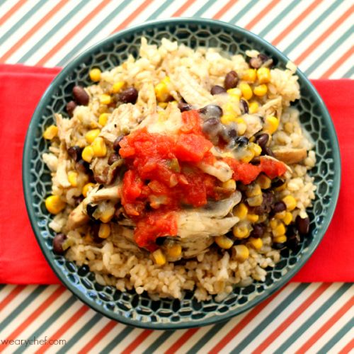 Homemade southwest chicken rice bowls are a much healthier alternative to Mexican takeout, and this 5-ingredient recipe makes preparing them a breeze. Just simmer up some chicken, prepared salsa, canned black beans and canned corn. When the chicken is nice and poached, remove it to shred, then add it back to the preparation, and serve on a fluffy bed of rice.