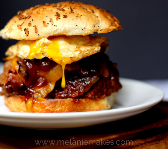 It all begins with a chunky wedge of bacon-wrapped meatloaf. To make your sandwich, pile it high with bourbon caramelized onions, cheddar cheese, barbecue sauce and a fried egg. Try getting your head around that one—let alone your lips! Get the recipe here.