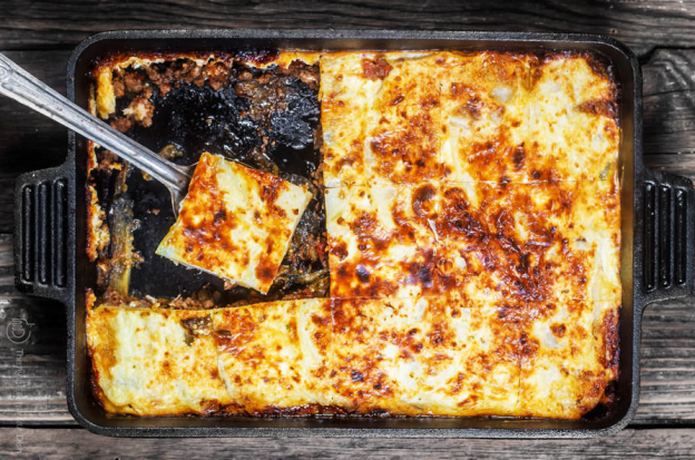 Moussaka is the Greek version of a comforting casserole. Loaded with thin slices of eggplant, ground lamb (or beef), tomato sauce, and a creamy cheese topping, it's got a well-rounded ingredient base and tons of flavor! Get the recipe here.