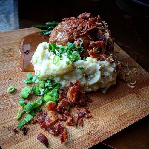 In Worcester, Massachusetts, The Hangover Pub has bacon all over its menu, including this bacon herb meatloaf with bourbon au poivre gravy, mascarpone whipped Yukon gold mashed potatoes and sauteed green beans. If you've got a sweet tooth at the end of your meal, try one of the stuffed bacon donuts or the bacon chocolate chip cookies because...bacon!