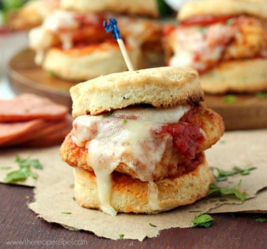 Chicken Pizziola Sliders On Garlic Herb Biscuits