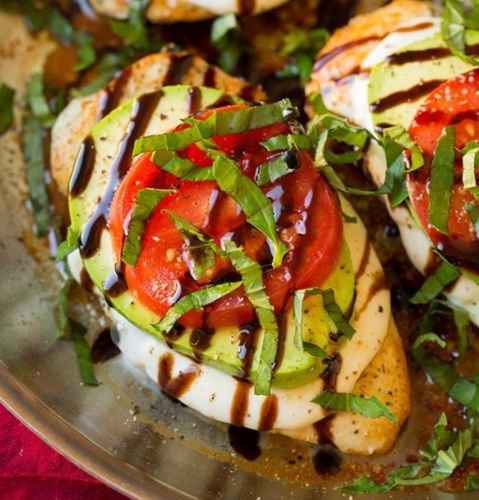 In this nifty skillet dinner, the classic Caprese salad (that's mozzarella, tomato, and basil, for the uninitiated) is reworked into a protein-yielding chicken dish. A slice of creamy avocado adds depth of flavor, while a drizzle of balsamic cuts through it all with a sweet-acidic tang. Get the recipe here.