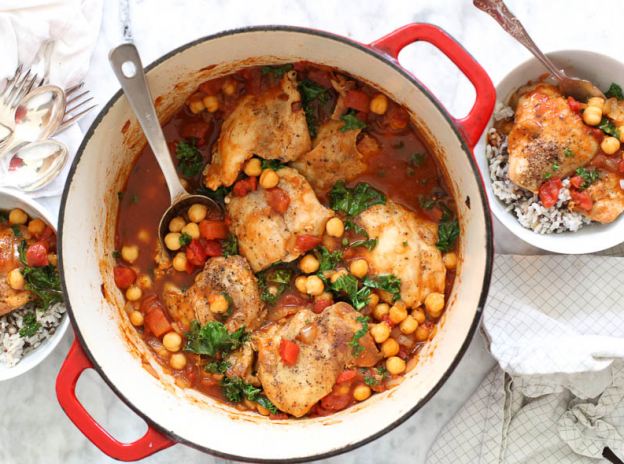 Tabasco fans, we've got a good one for you. Tomato-based broth is infused with the distinct peppery flavor of Tabasco sauce (1 whole tablespoon to be exact!) and gets simmered with fiber-packed garbanzo beans, super leafy green kale and cooked chicken thighs for a dish that is sure to wake your sleeping taste buds. Get the recipe here.