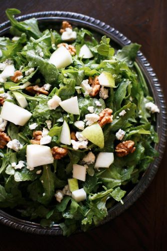 Toss together some flavorful chunks of cheese, sweet pear cubes, and crispy, spicy lettuce. Recipe here!