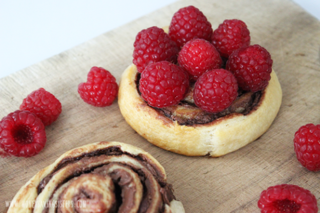 This hazelnut variation of the ordinary cinnamon roll requires just three ingredients: crescent rolls, Nutella, and raspberries, or whatever fruit you want to top the rolls off with. Perfect for a weekend breakfast or brunch!