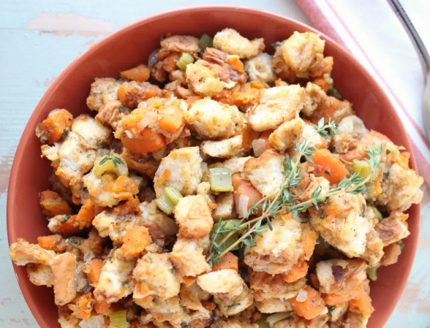 Even if you're not serving a bird for Christmas dinner, you can still make a delicious stuffing side to round out the holiday menu. And if you're stumped for ideas, try this effortless crock pot sweet potato stuffing made with a bag of prepared stuffing and all the usual aromatic suspects. Make it vegetarian by simply subbing vegetable broth for the chicken broth.