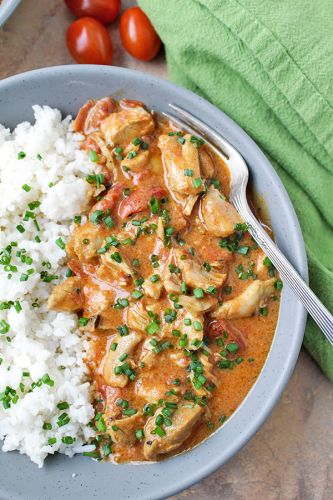 This fast chicken curry is so tasty and easy to prepare, you might never make the traditional kind again. Especially when you see the simplified ingredient list! Creamy, perfectly spiced and ready in 20 minutes? What more could you want!
