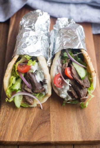 Beef gyros are usually a greasy, caloric affair, but you can make this healthier homemade version in less than an hour at home. Cook the meat in your Instant Pot using the pressure cooker function, and serve in warmed pita breads with all the requisite garnishes.