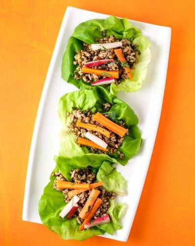 Obviously, you're not cooking the lettuce, but everything else in this fresh, clean recipe is getting prepped in your Instant Pot! First, you'll use the pressure cooker for the wheat berries, then turn to the saute function for the ground pork and sauce. Easy peasy!