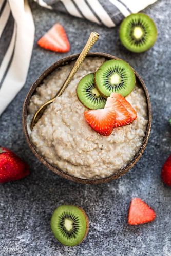 Cooking your oatmeal in the Instant Pot pressure cooker yields wonderfully fluffy results, and it literally takes 4 minutes to cook! You do have to account for the time it takes the internal pressure to go up before cooking and then releasing afterward. But it's totally hands-free! Get the recipe here.