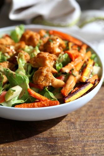 Give your regular roasted vegetable salad a nutty upgrade with this recipe, which combines them with a delicious peanut butter sauce. Roasting the cauliflower when it's already been coated concentrates the flavor like nothing else. Recipe here.