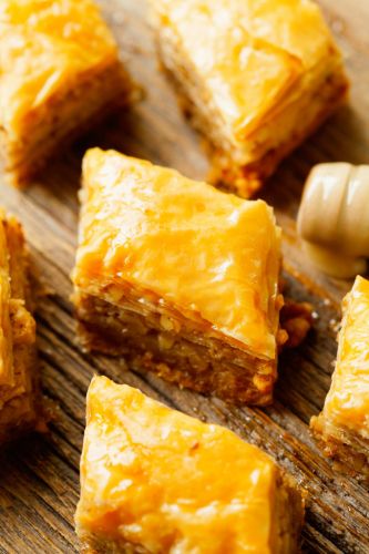 Dating back to the Ottoman Empire, baklava is a sweet pastry dessert beloved all throughout the Middle East and surrounding areas. It's made with layers of filo pastry, chopped nuts, and some kind of syrup or honey to hold it all together. While we recommend you try it authentically-made if you have a local bakery or specialty store that offers it, you should also attempt it at home at some point too. Unlike cakes, cookies, or muffins, this dessert requires a bit more hands-on attention and is so rewarding when you finally get to enjoy your spoils!