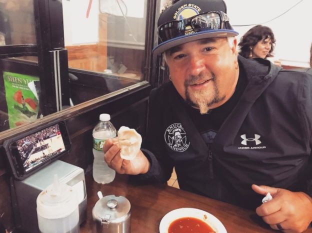 Food Network star Guy Fieri has to spend more time eating other people's food than his own for the popular Food Network show Diners, Drive-Ins And Dives. When he isn't being paid to feature a place, you might find him at Tasty Hand-Pulled Noodles in New York: "In nyc at one of my fav noodle joints #tastyhandlepullednoodle... watchin the @warriors on the "big screen!""