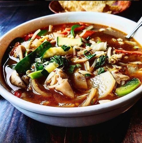 Pictured here: Won ton soup with made-from-scratch pork dumplings in dashi broth.