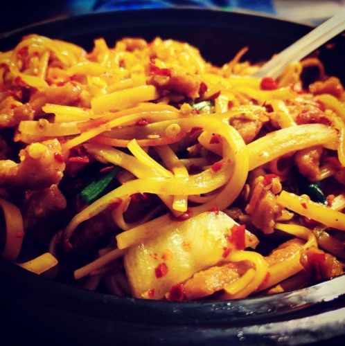 Pictured here: Spicy noodles