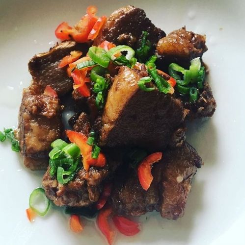 Pictured here: Spicy Hunan pork belly (and yes, it really is spicy)