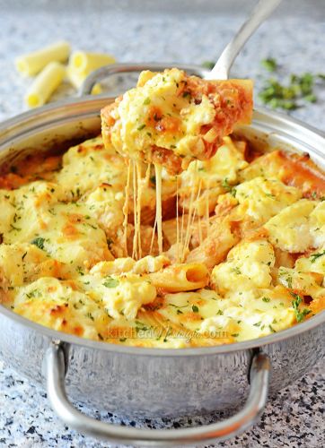 This vegetarian version of baked ziti is just as comforting and twice as delicious as the traditional recipe! Just mix the pasta with tomato sauce and coat with a rich blend of mozzarella, ricotta, and Parmesan cheese before baking. Recipe here.