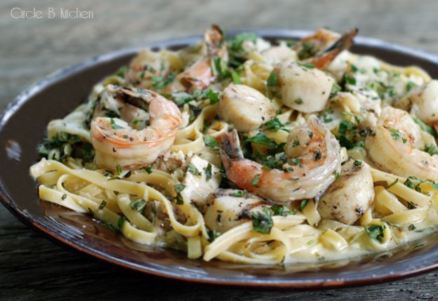 This versatile seafood pasta recipe is all about the method. While your seafood of choice soaks in the flavors of a tangy lime-herb marinade, make a quick pan sauce with white wine and goat cheese. Once the seafood is grilled and the pasta is cooked, toss it all together with a generous handful of parmesan cheese.