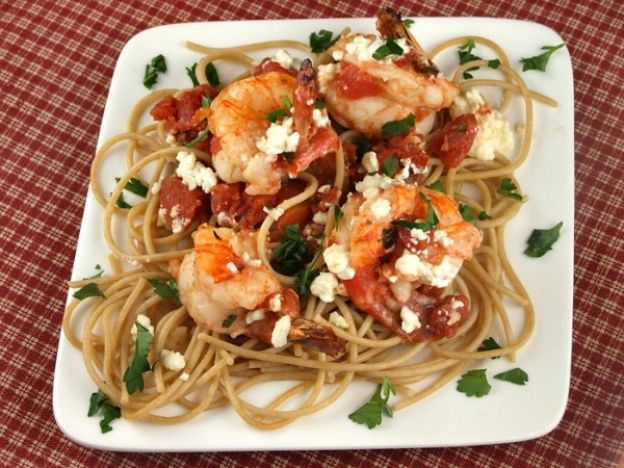 You'll need some lemon and garlic for extra flavor, and then it's just a matter of 3 fabulous but simple ingredients to make this yummy seafood pasta. We're talking a can of tomatoes, fat, juicy shrimp and creamy feta cheese, and your Greek-style dinner is done!