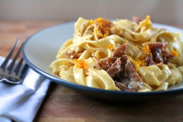 This mouthwatering tagliatelle recipe combines salty prosciutto ham with plenty of cream and sweet, zesty orange for a sophisticated, delicious meal that is no less impressive for the fact that it is super easy to throw together!