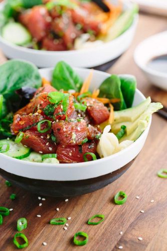 Indulge your inner Hawaiian surfer with this recipe for ahi tuna poke bowls, composed of quick-marinated sushi-grade ahi tuna, rice, salad greens and various healthy toppings. Obviously, you'll need to have leftover rice on hand for this to be a 100% no-cook meal.