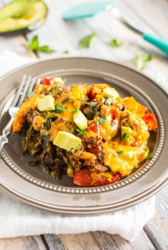 This slow cooker taco casserole recipe lightens things up a bit with extra lean ground beef and the addition of collard greens for extra nutrition. Combined with black beans and other fresh veggies, it's sure to keep your family happy and full!